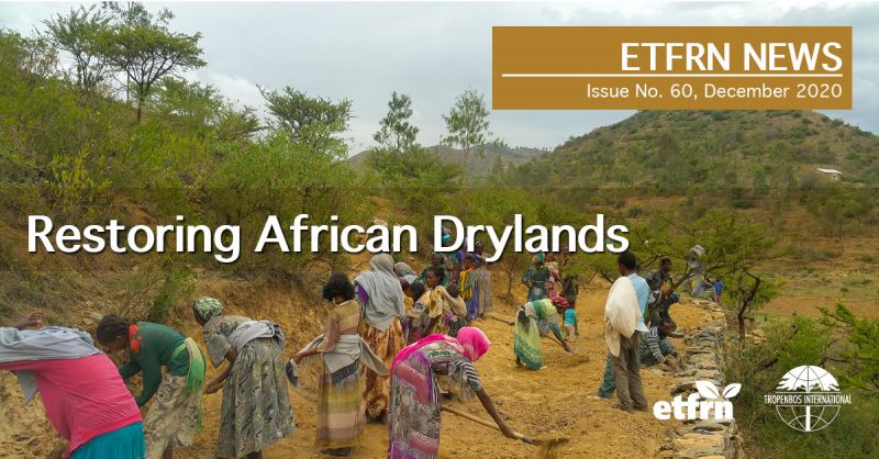 ETFRN News 60 focuses on dryland restoration in the Sahel and the Greater Horn of Africa where levels of poverty, land degradation and out-migration are acute. It collates 36 articles from more than 100 contributors, including some long-term analyses of remarkable increases in tree cover and improved agricultural yields over large areas of the Western Sahel never published before, landscape restoration in Ethiopia, and examples from many other countries.