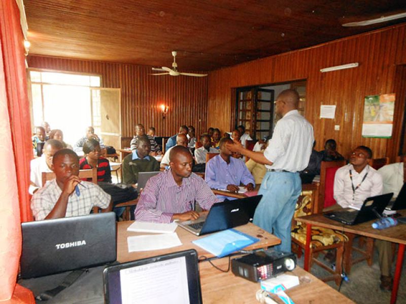 The training covered the following topics: (1) identifying and formulating the research problem, research questions and hypothesis, (2) developing tools to collect qualitative and quantitative data, (3) encoding data for processing and analysis, (4) explaining observed facts, (5) understanding phenomena and the behaviors observed, (6) establishing rationalities in fact, attitudes and observed phenomena (7) reporting research findings. The training was facilitated by professor Alphonse Maindo (Programme Director of TBI DR Congo) and Gaston Kimbwani (professor at university of Kisangani, TBI DR Congo consultant).